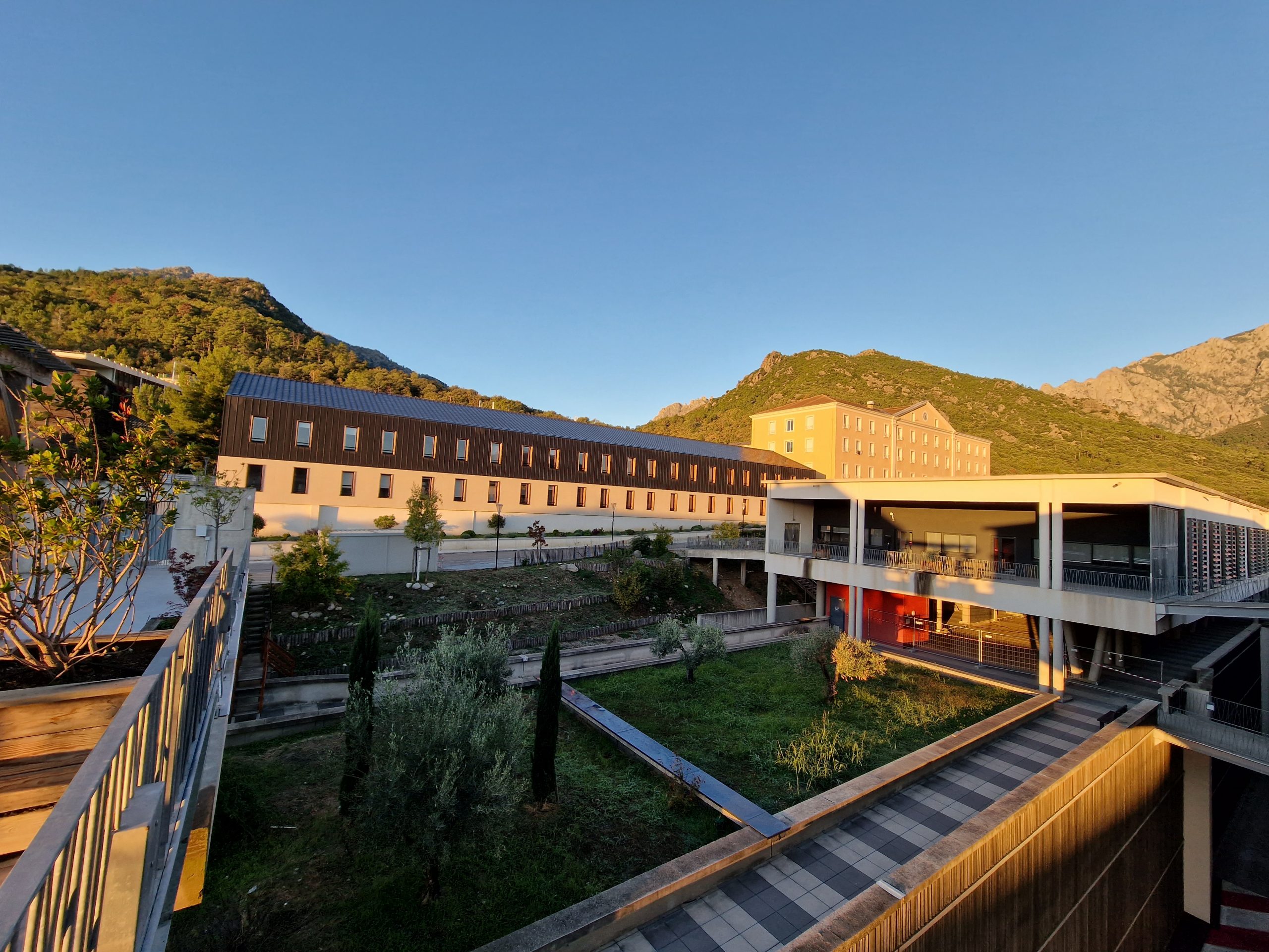 À Corte, les campus Mariani et Grimaldi accueillent les 8 facultés, instituts et écoles avec un patrimoine bâti d’environ 41 000m². Ces campus, modernes et accueillants, offrent des espaces de travail, de rencontre et d’échanges, véritables lieux de vie conçus pour accompagner au mieux les étudiants dans leurs parcours. L’Université de Corse s’est engagée dans un vaste programme de rénovation énergétique de ses bâtiments pour réduire sa consommation énergétique mais également son impact environnemental au maximum. Plusieurs jardins nouvellement aménagés et arborés participent de l’effort de proposer aux étudiants des espaces de vie épanouissants. Les étudiants bénéficient ainsi d’un cadre de vie dynamique et d’un environnement d’apprentissage particulièrement favorable.