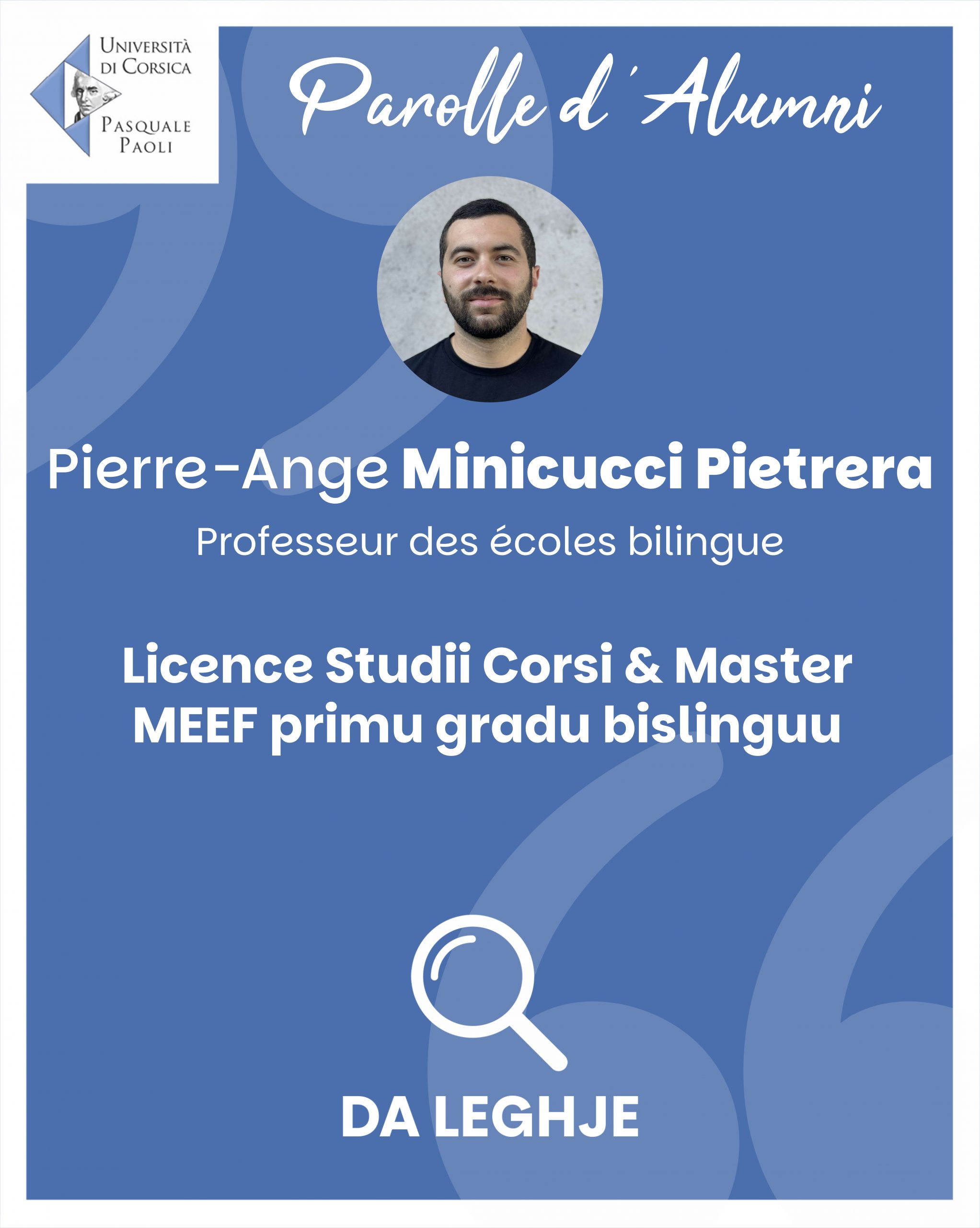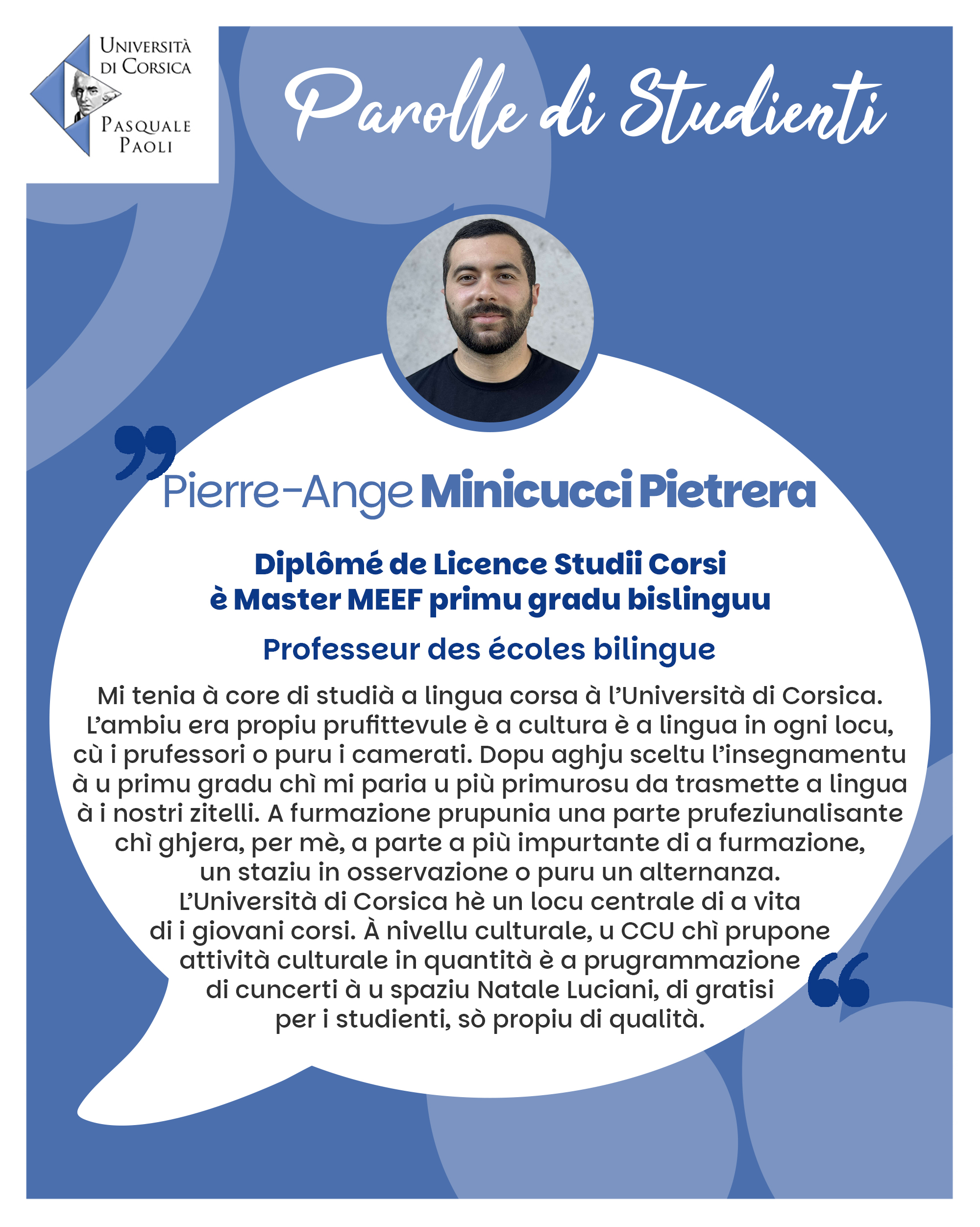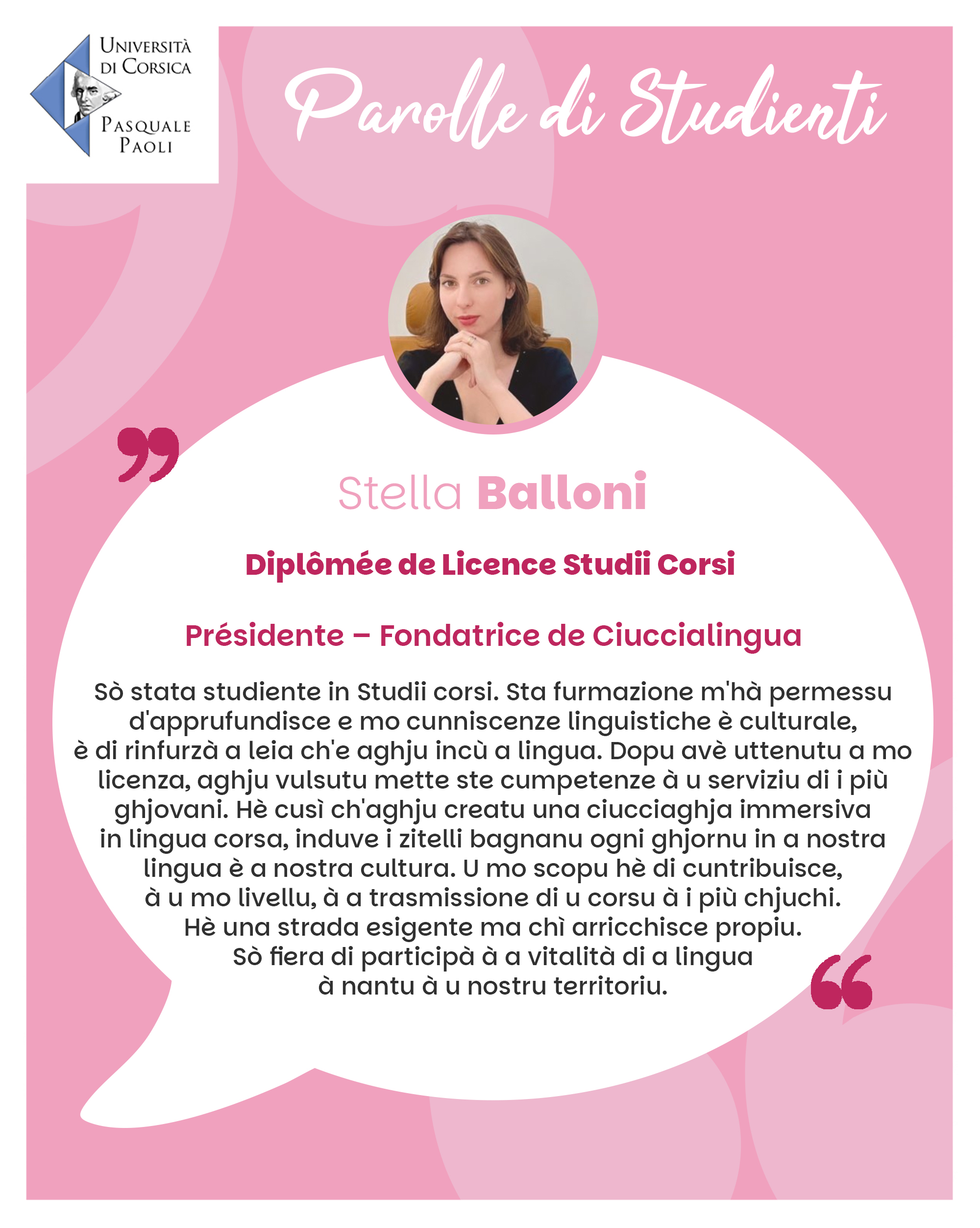 Si vous ne souhaitez plus apparaître dans cette rubrique, merci d’envoyer un mail à communication@univ-corse.fr pour le retrait du témoignage.