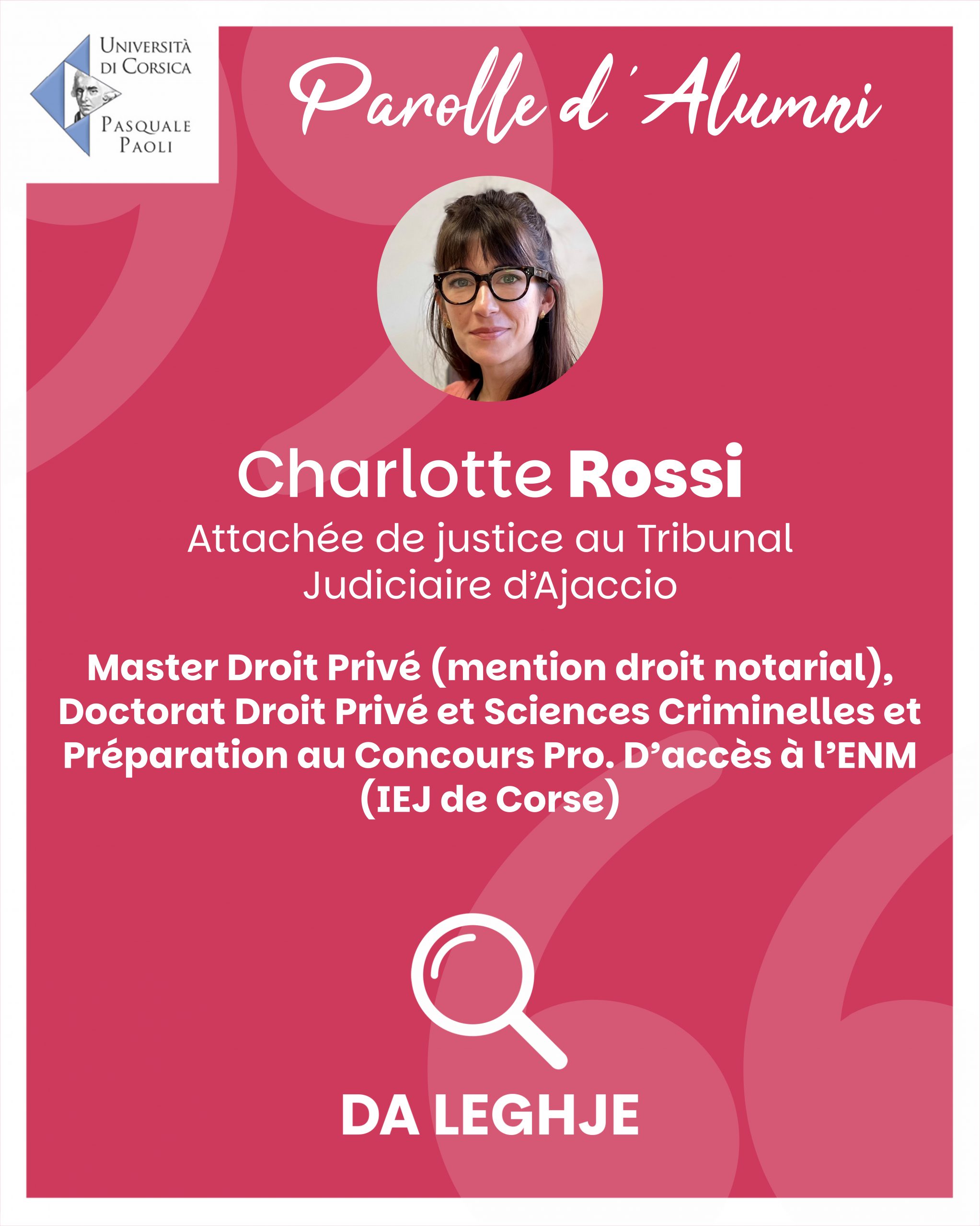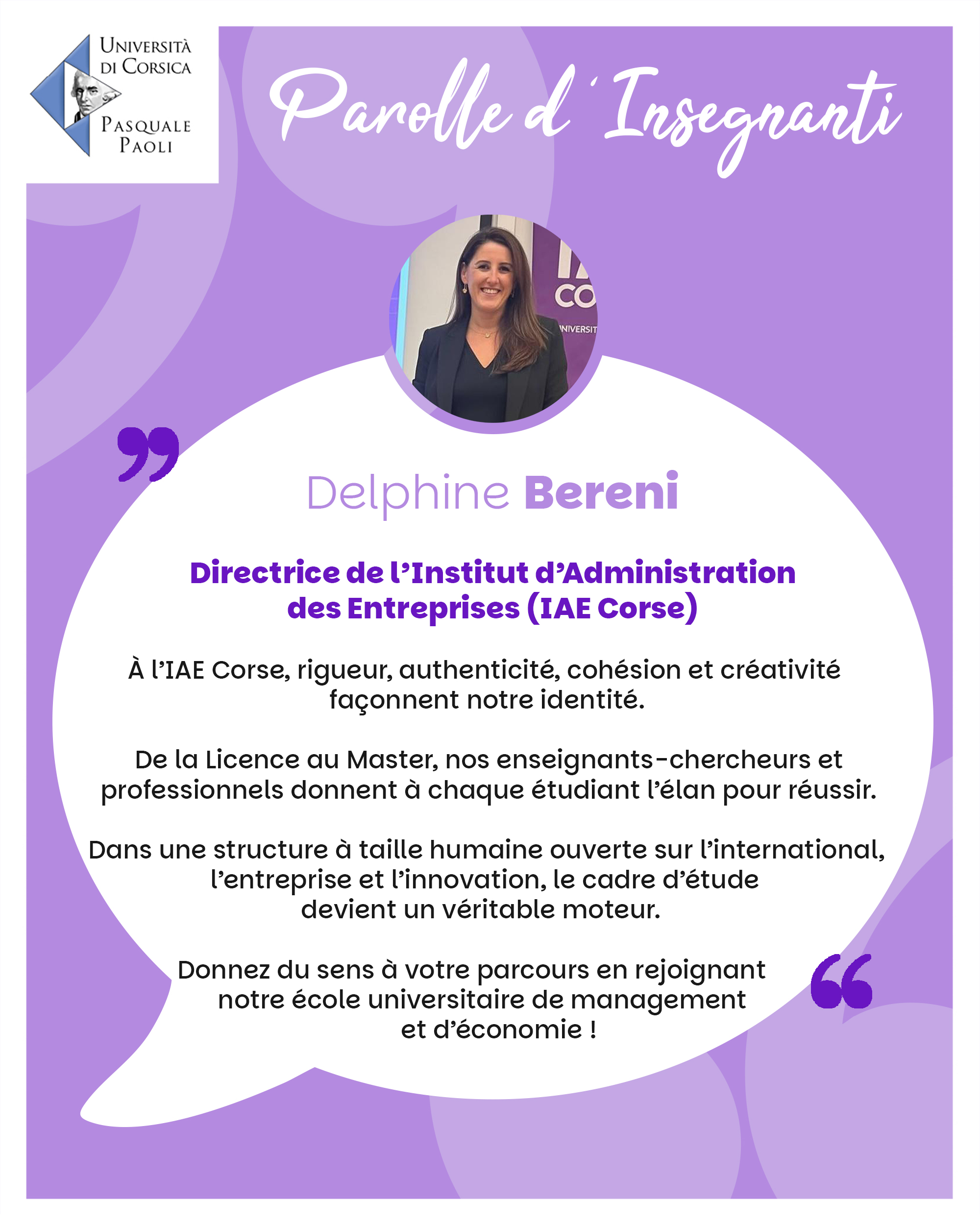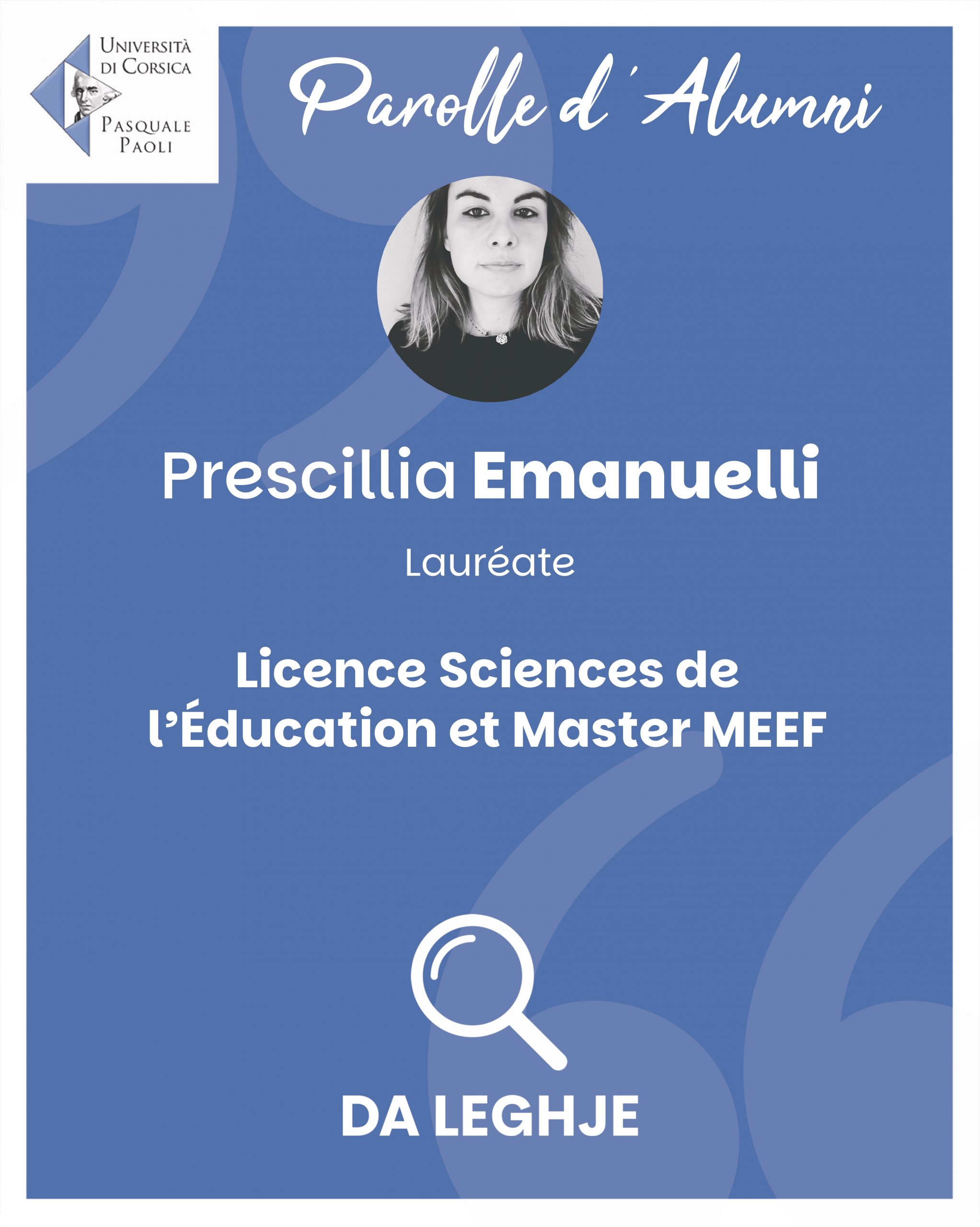 Si vous ne souhaitez plus apparaître dans cette rubrique, merci d’envoyer un mail à communication@univ-corse.fr pour le retrait du témoignage.